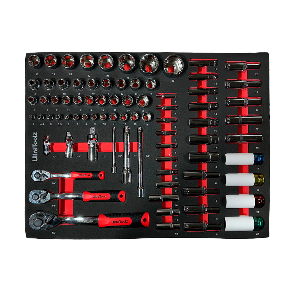 - Szuflada 1 – Klucze nasadowe i grzechotki