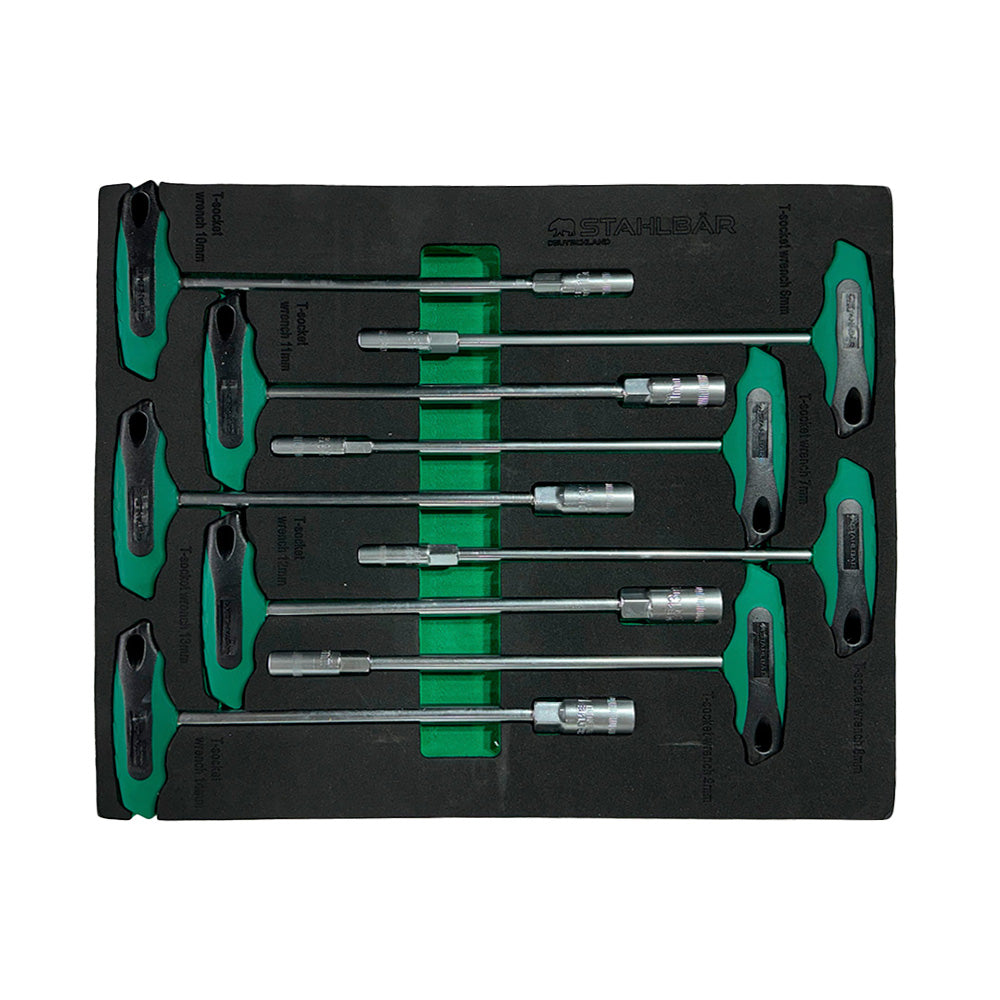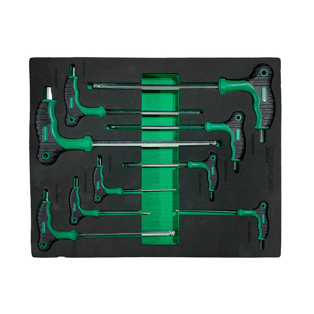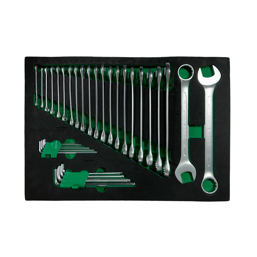 - Szuflada 10 – Zestaw kluczy płasko-oczkowych i długich kluczy imbusowych